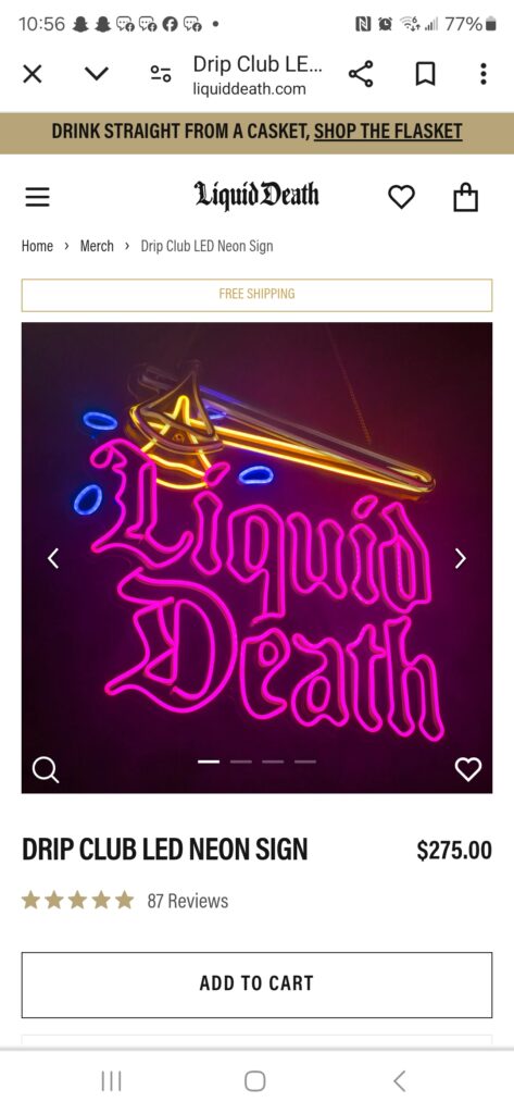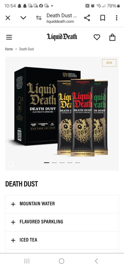 Liquid Death has definitely found it's niche in the beverage market by producing quality products and combining them with a brilliant dark humor marketing campaign and imaging.